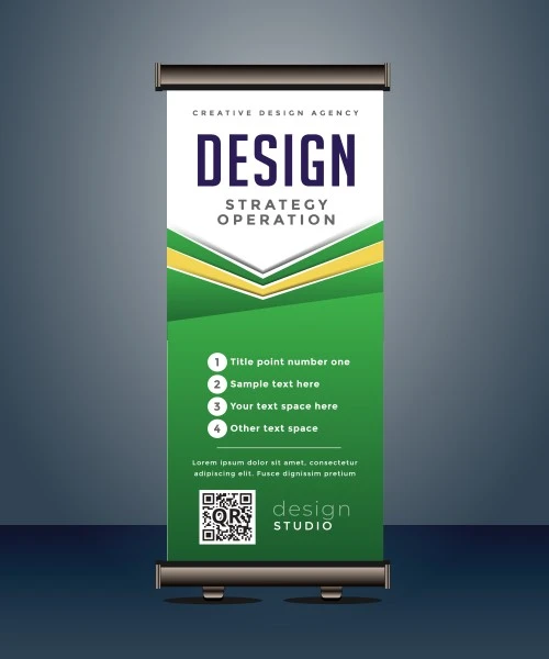 The roll-up system allows the banner to retract into the base, making it easy to carry and store.